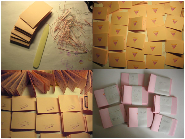8 pages . handstamped cover . first printing . 2011 . printed on a damaged printer on rosé paper . limited on 50 copies