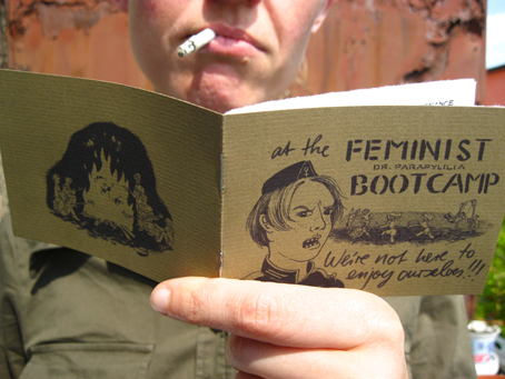 This wry little mini-comic reveals the TRUTH about how women turn to feminism… at the militaristic feminist boot camp, of course. Stereotypes about feminism are shown—and doubled down on, with comedic impact. Extra nice production values and a wonderful surprise happy ending. A perfect tiny gift for your favorite feminist and/or queer lady friend.