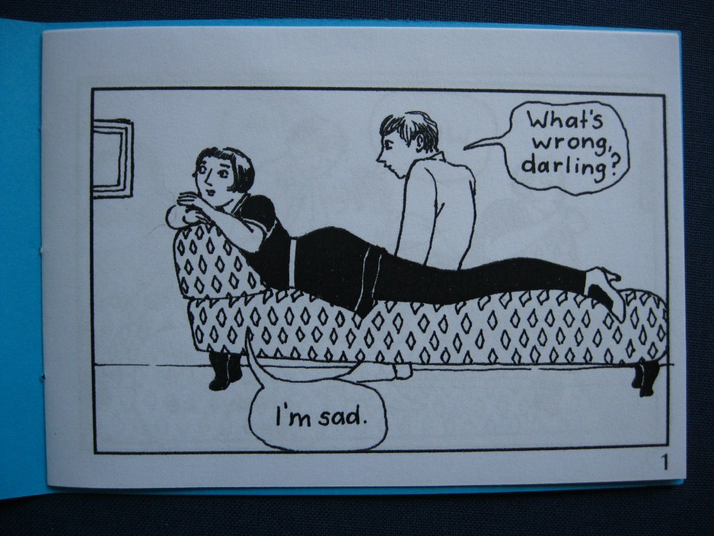 Tijuana Bibles had different names like Bluesies or Blue Books (because of the blue ink they were often printed with). In the first Tijuana Bible by Dr. Paraphylia the color blue also indicates to „having the blues“.