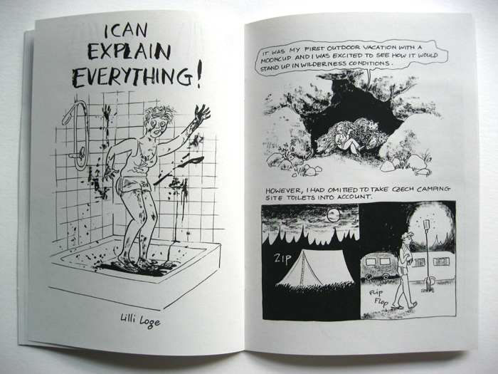 This whimsical comix zine is all about menstrual cups, complete with their untold history, their uses and misuses, and a macrame project! A very funny zine for anyone who loves their reusable menstrual products, wonderful pretend history, and mini-vampires.